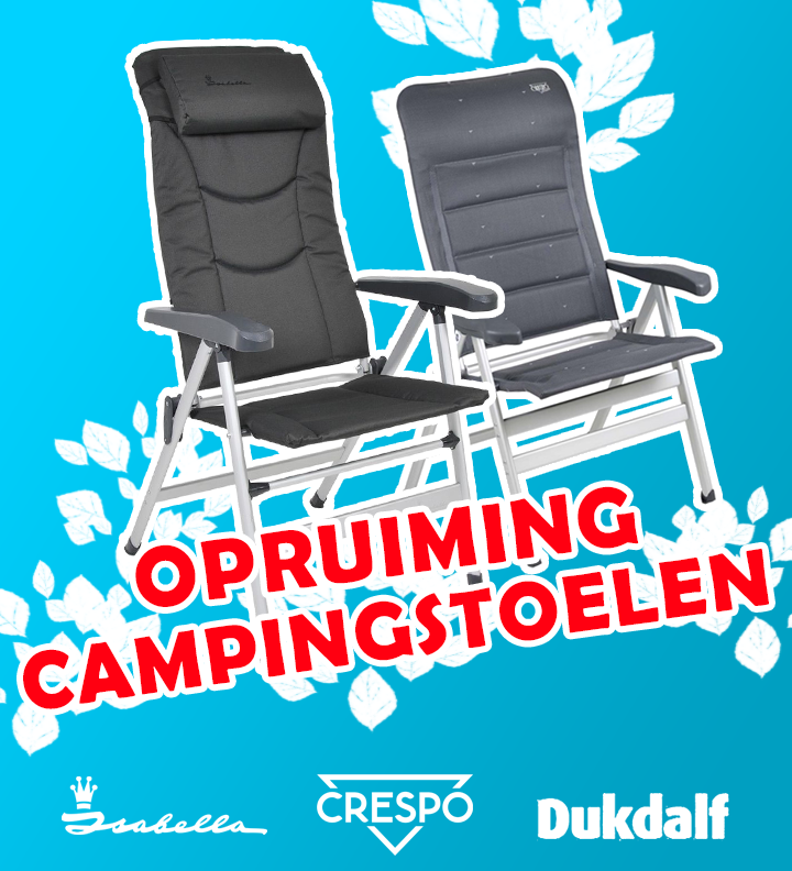 Vanwege wijzigingen in ons campingshop-assortiment zijn diverse campingstoelen en campingmeubels van de topmerken Isabella, Crespo en Dukdalf nu voordelig geprijsd met kortingen die oplopen tot wel 50%. Onze campingshop-medewerkers adviseren u graag over de beschikbare modellen. OP=OP!